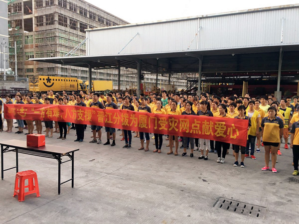 面對災情,韻達速遞總部積極行動,當即通過各類平臺發(fā)布緊急募捐倡議書,倡議全網(wǎng)絡韻達同仁為災區(qū)捐款。大家紛紛響應,心系災區(qū),積極捐款,奉獻愛心,表現(xiàn)出韻達“全網(wǎng)一體”的凝聚力和“一方有難,八方支援”精神,將鼓舞受災的韻達廈門地區(qū)網(wǎng)點克服困難,迎難而上,在為廣大廈門地區(qū)客戶提供優(yōu)質(zhì)服務的同時,做好災后重建工作。
